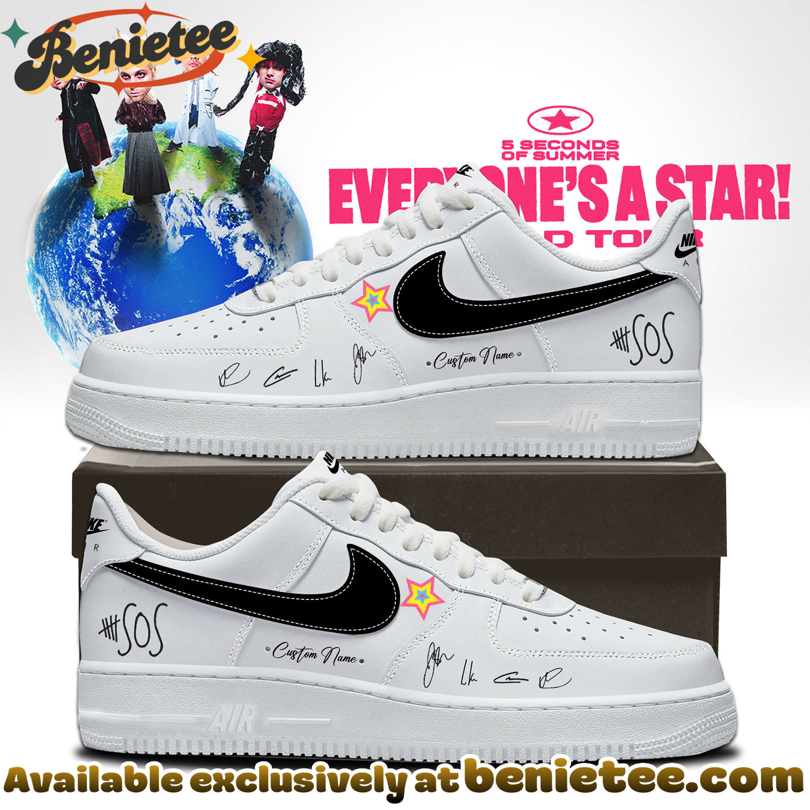Celebrate the 5SOS EVERYONE IS A STAR World Tour with these unique Air Force 1s!