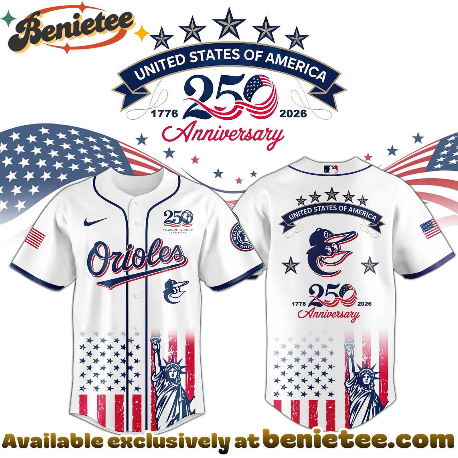 Get your All Team MLB BAL Orioles special Americas 250th Anniversary Limited Edition Jersey today!