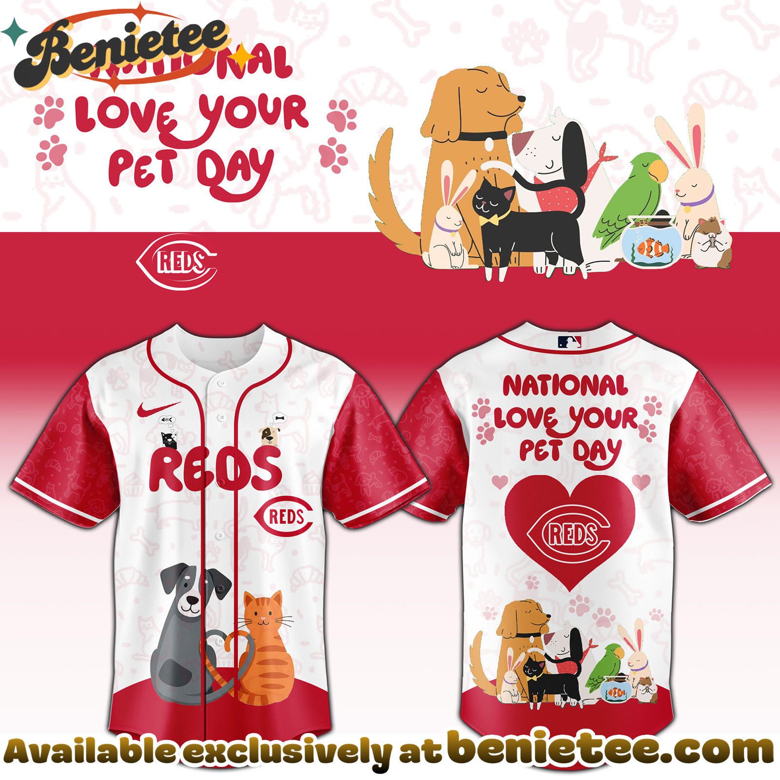 Get your All Team MLB CIN Reds special National Love Your Pet Day Limited Edition Jersey now!