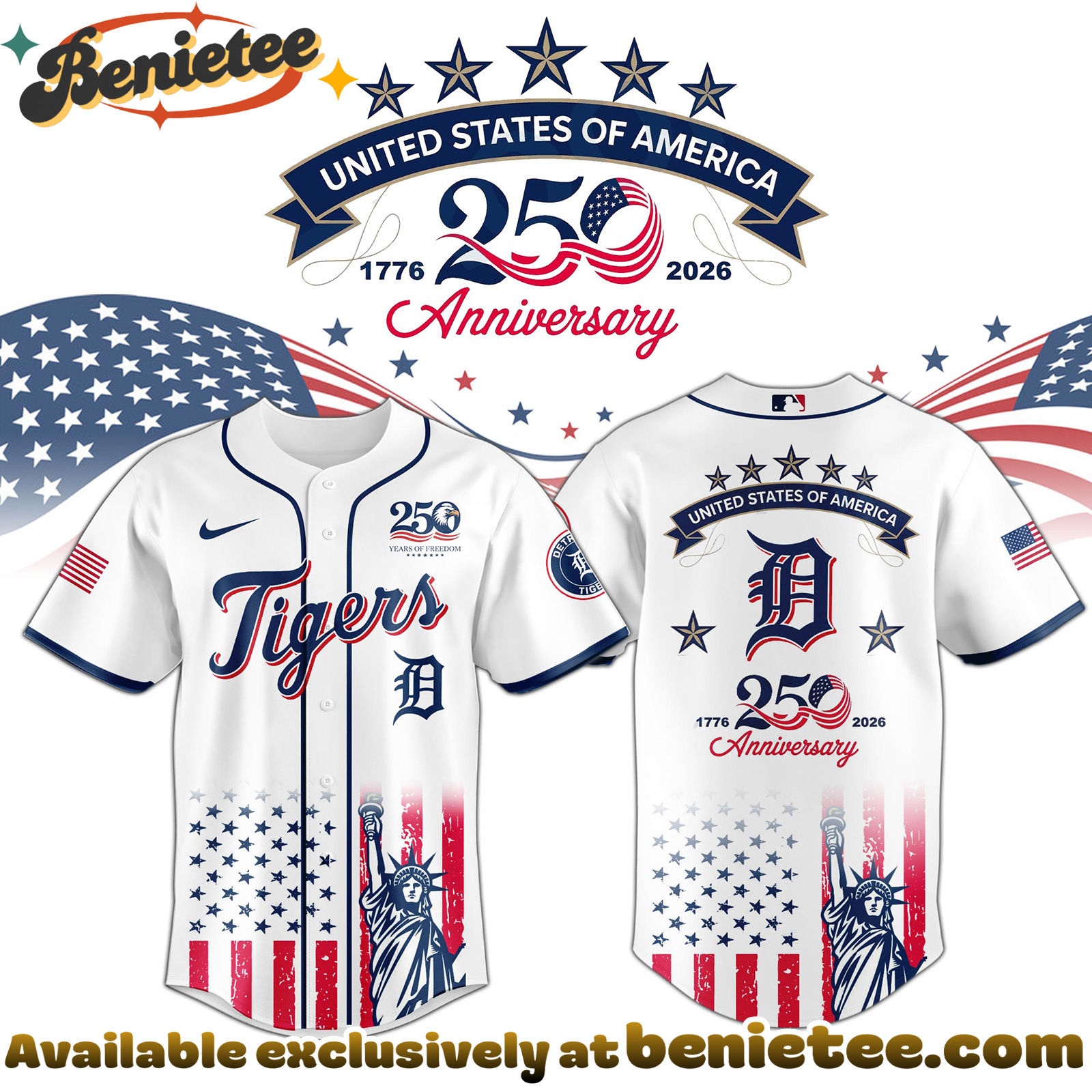 Get Your All Team MLB DET Tigers special Americas 250th Anniversary Limited Edition Jersey Today!