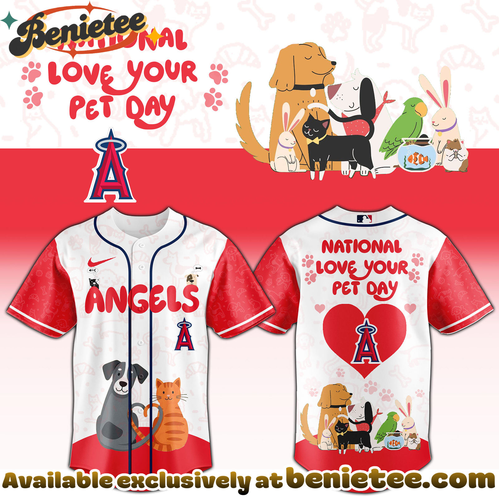 Celebrate National Love Your Pet Day with the All Team MLB LA Angels special Limited Edition Jersey