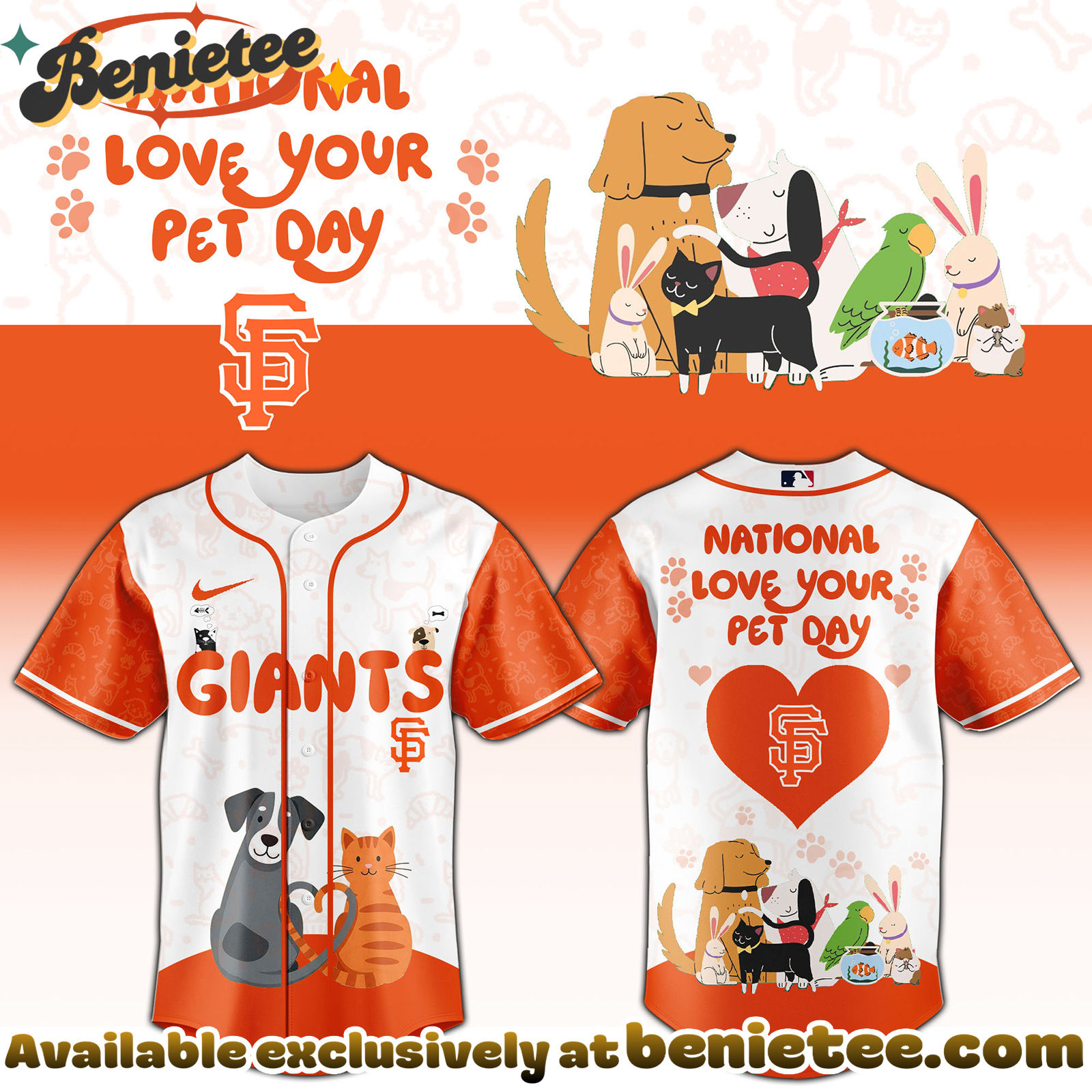Celebrate National Love Your Pet Day with the All Team MLB SF Giants special Limited Edition Jersey!