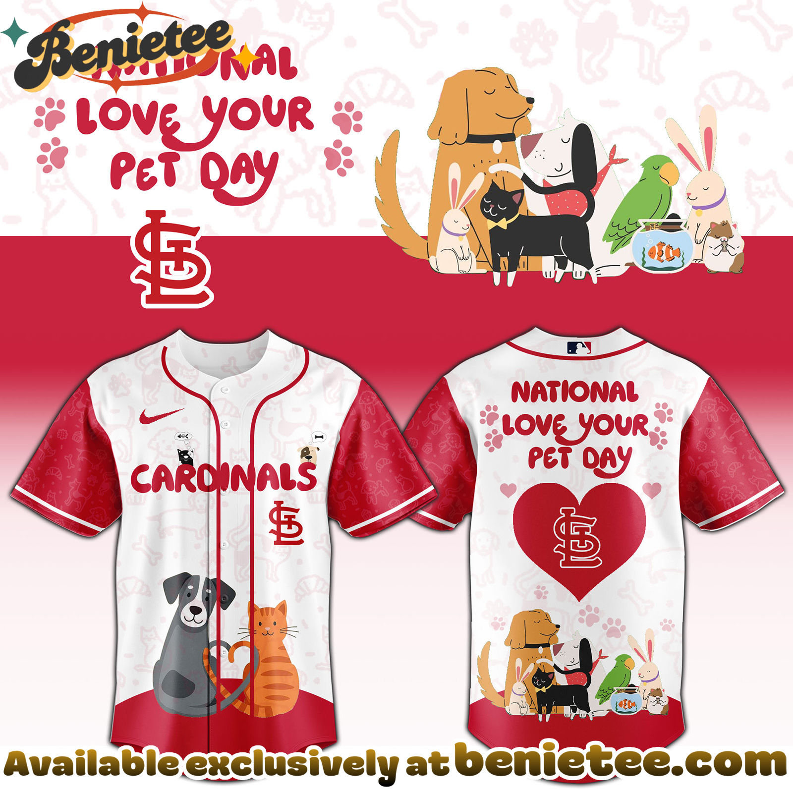 Celebrate Your Love for the STL Cardinals and Pets with this Special National Love Your Pet Day Limited Edition Jersey