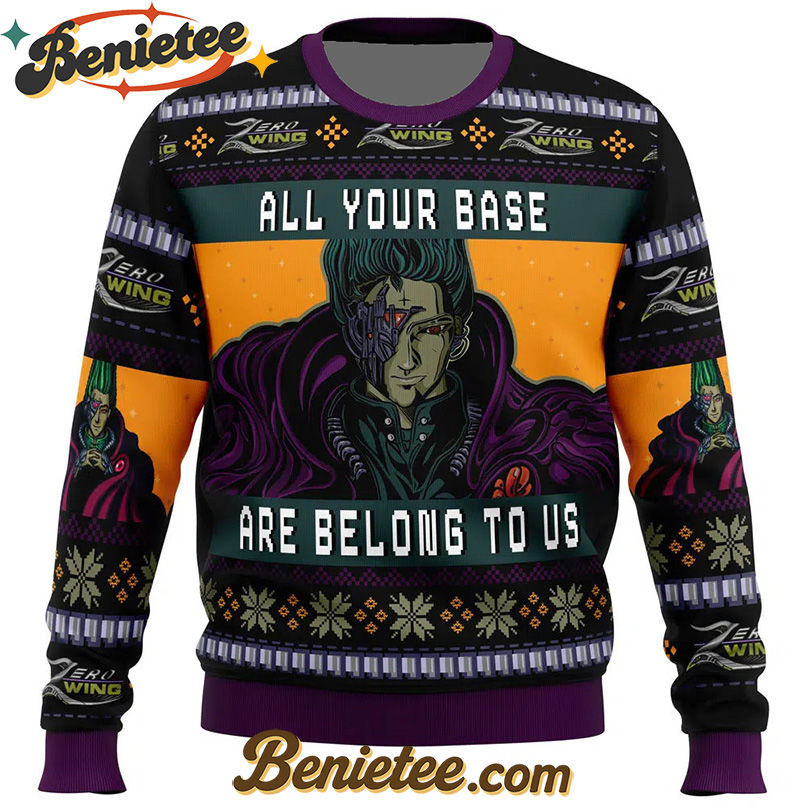Celebrate the season with the All Your Base Are Belong To Us Zero Wing Ugly Christmas Sweater — a playful, cozy ugly sweater made for joyful holiday moments.