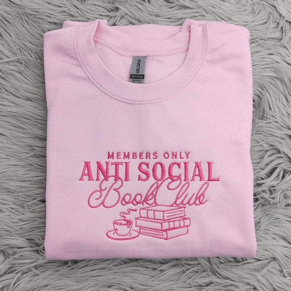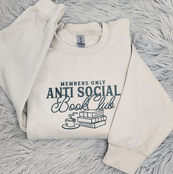- This item: Anti Social Book Club Embroidered Crewneck, Book Club Merch, Anti Social Sweatshirt