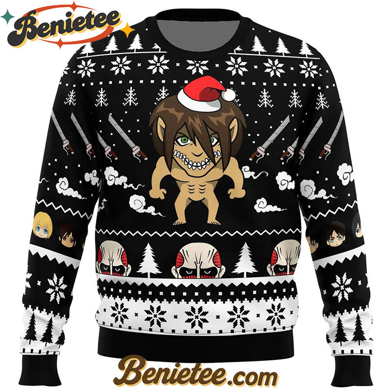 Celebrate the season with the Attack Titan Attack On Titan Ugly Christmas Sweater — a playful, cozy ugly sweater made for joyful holiday moments.