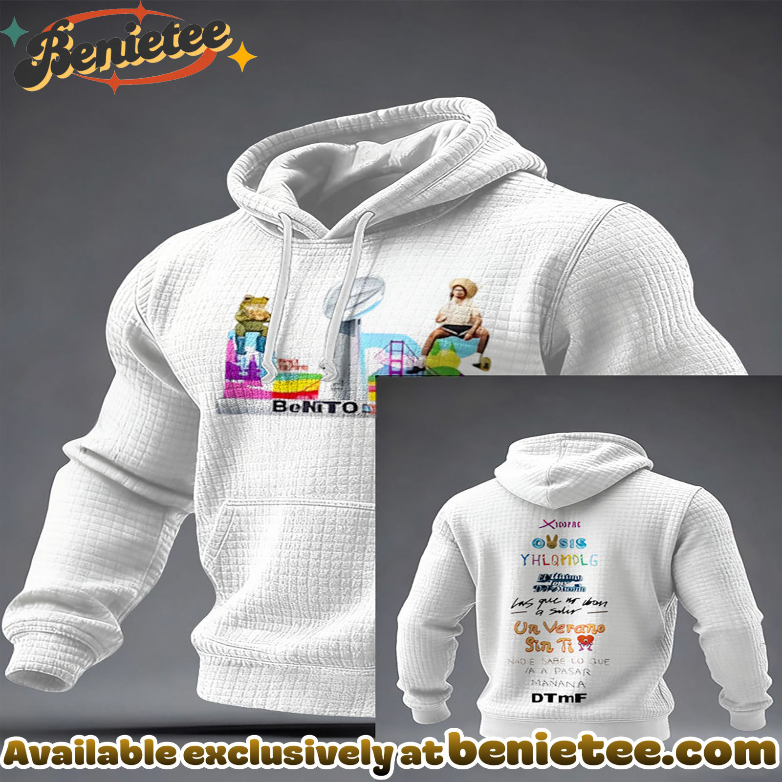 This special edition Waffle Hoodie captures the essence of Bad Bunny’s “Benito Bowl” tracklist, a fan-favorite element from the “Un Verano Sin Ti” album. Its unique design pays homage to the artistry and cultural impact of this record-breaking release. Made for comfort and durability, this hoodie is the ultimate way to express your fandom and connect with the music that has defined a generation. Don’t miss out on owning a piece of music history; purchase this exclusive hoodie and keep the vibe of “Un Verano Sin Ti” alive.