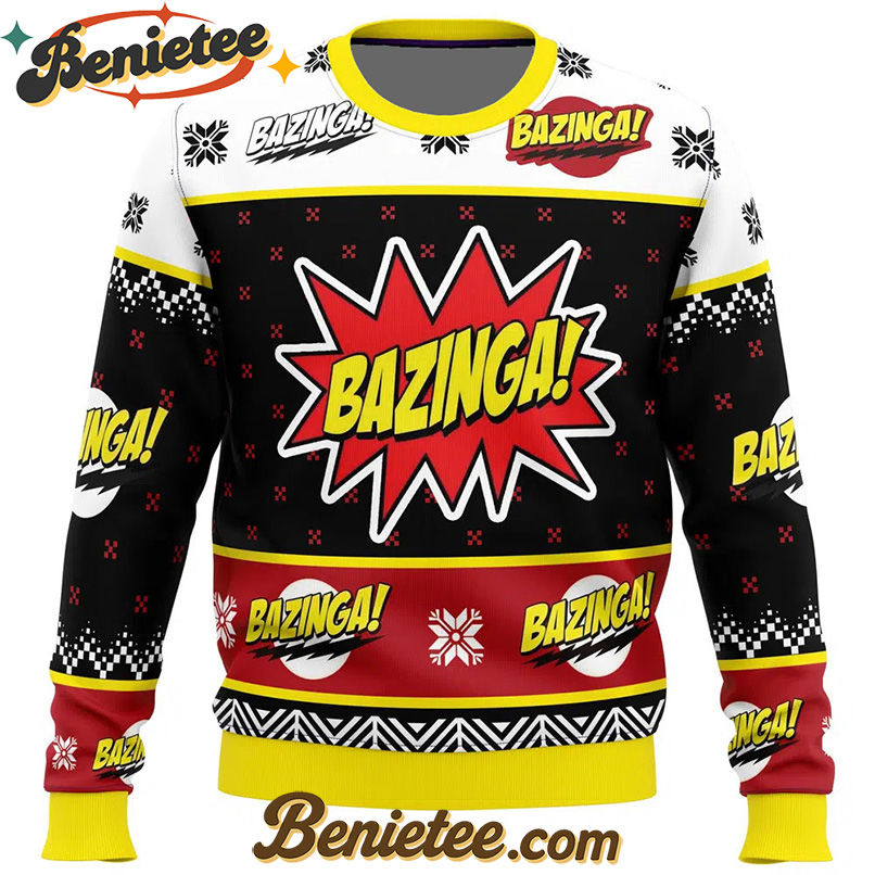 Celebrate the season with the Bazinga The Big Bang Theory Ugly Christmas Sweater — a playful, cozy ugly sweater made for joyful holiday moments.