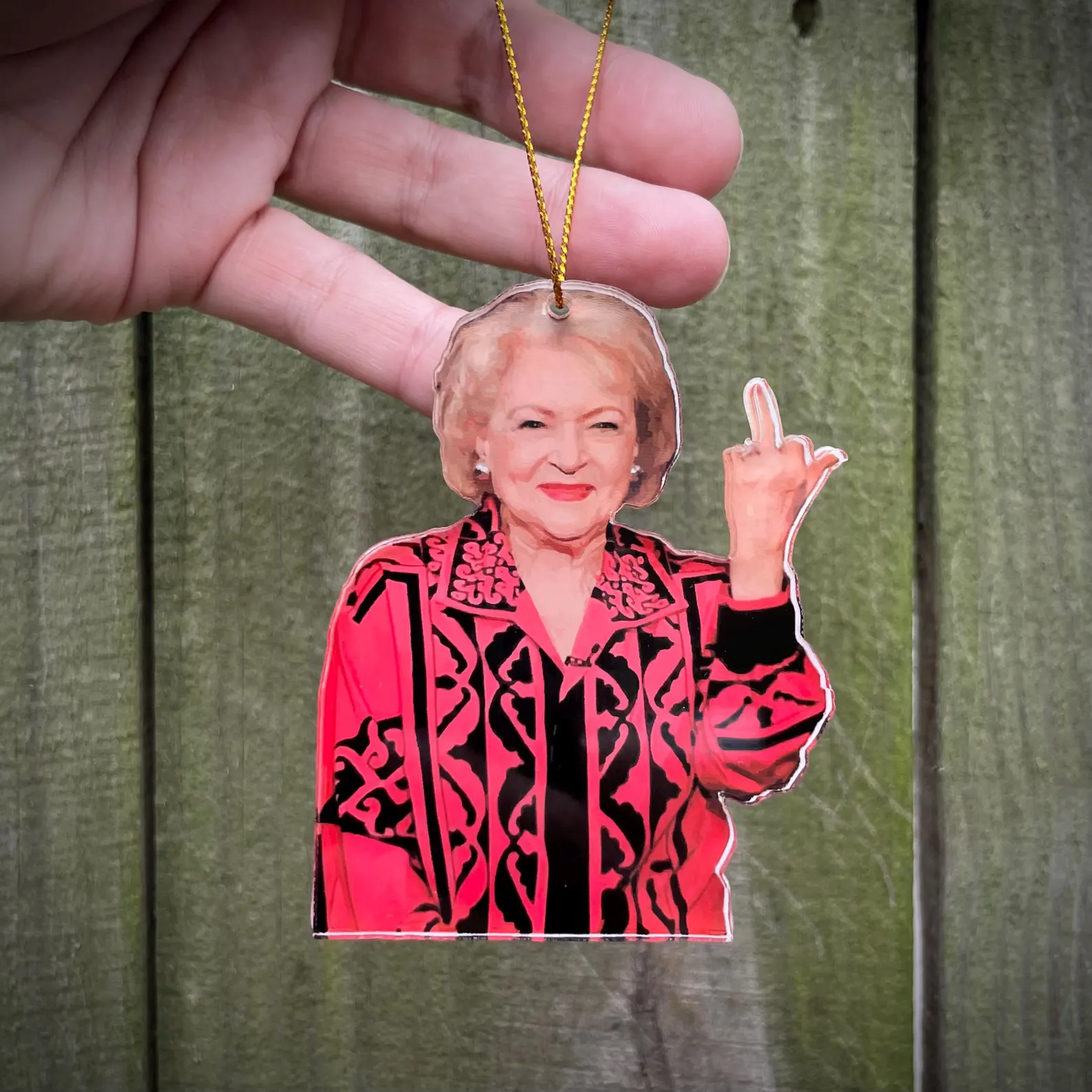 Betty White Christmas Ornament, Betty White Flipping the Bird, Funny Xmas Ornament, White Elephant Gift