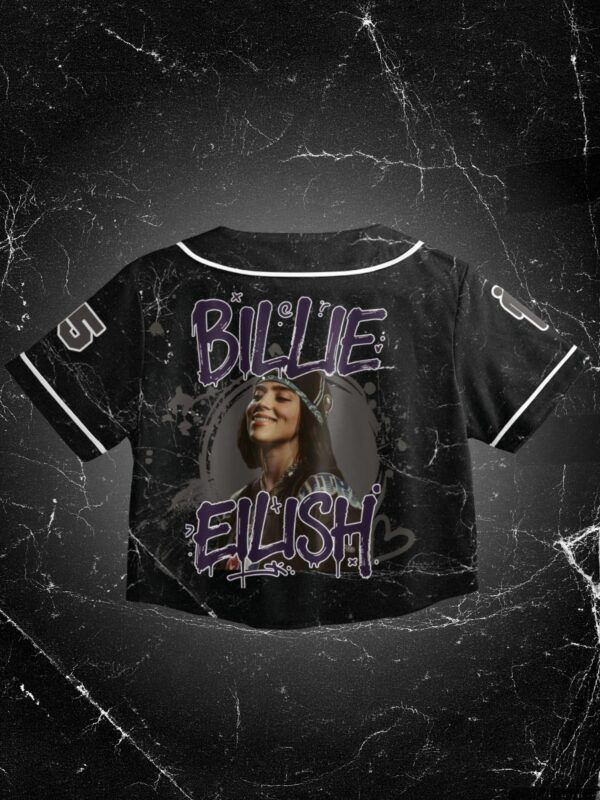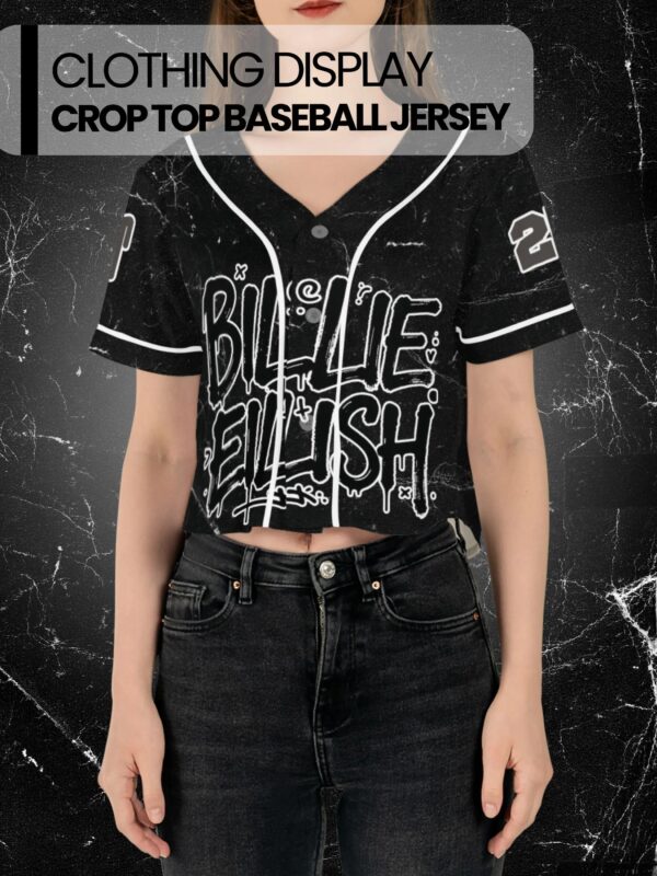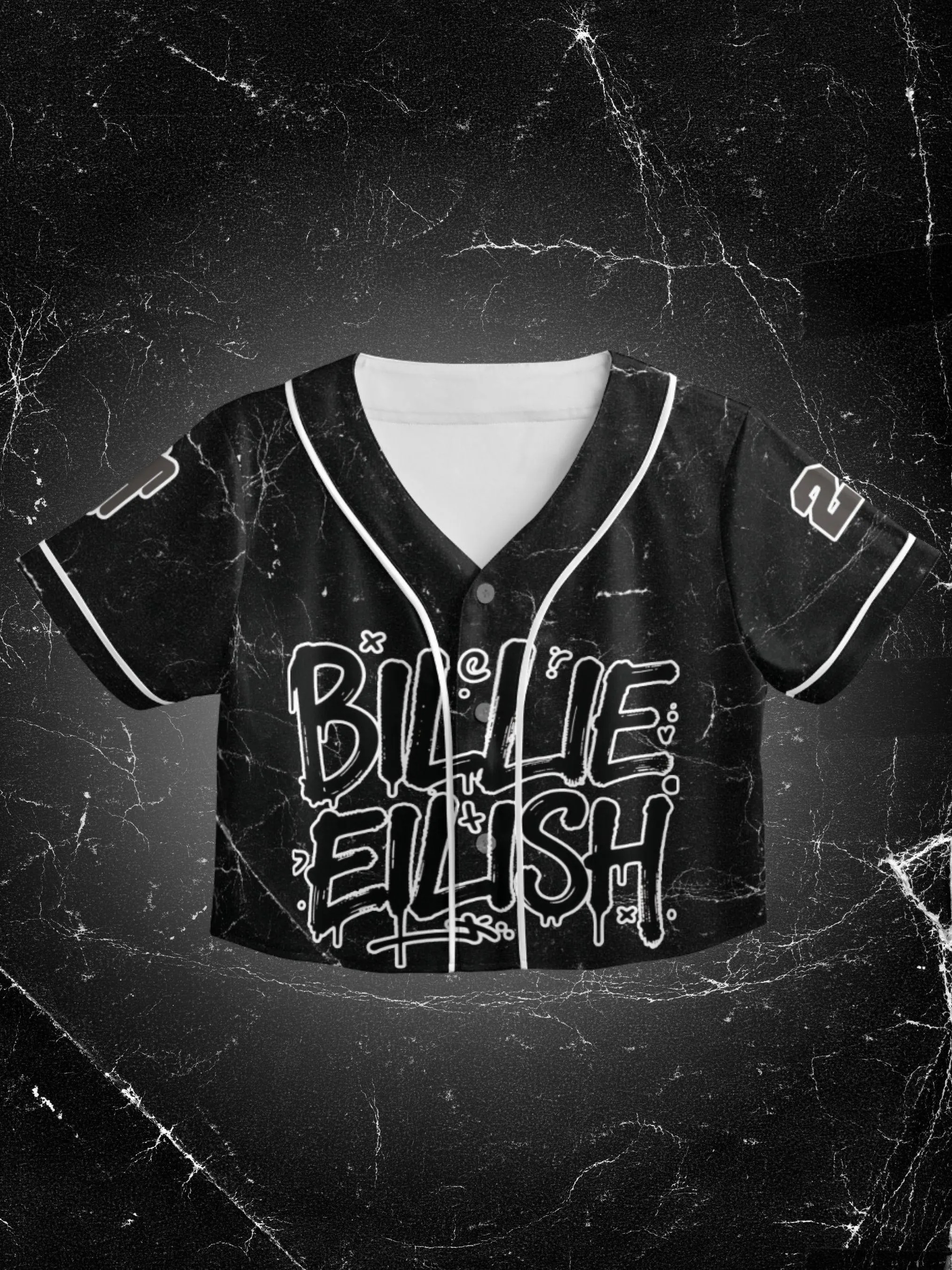 Billie Eilish Themed Crop Top Baseball Jersey, Custom Name And Number