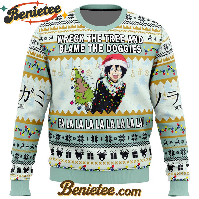 Unleash Your Norogami Fanaticism with Our Blame The Doggies Ugly Christmas Sweater!