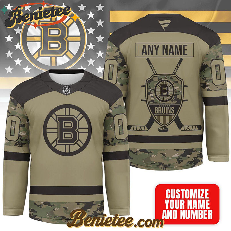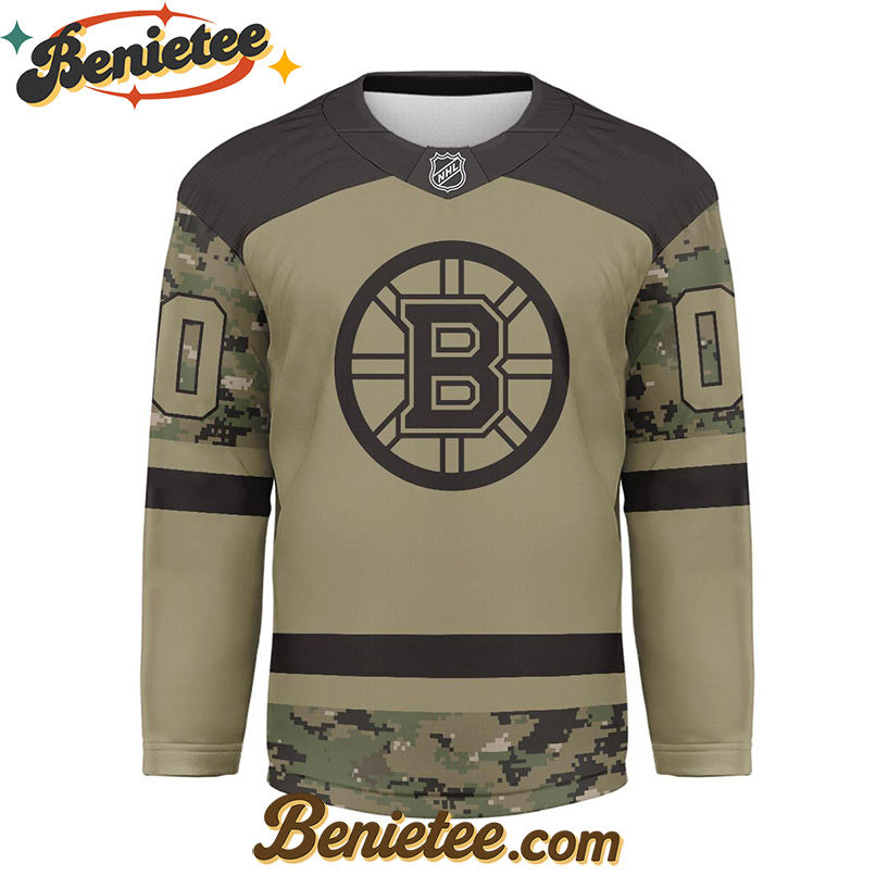 Show Your Boston Bruins Pride with This Premium NHL Camo Army Hockey Jersey – Shop Now!