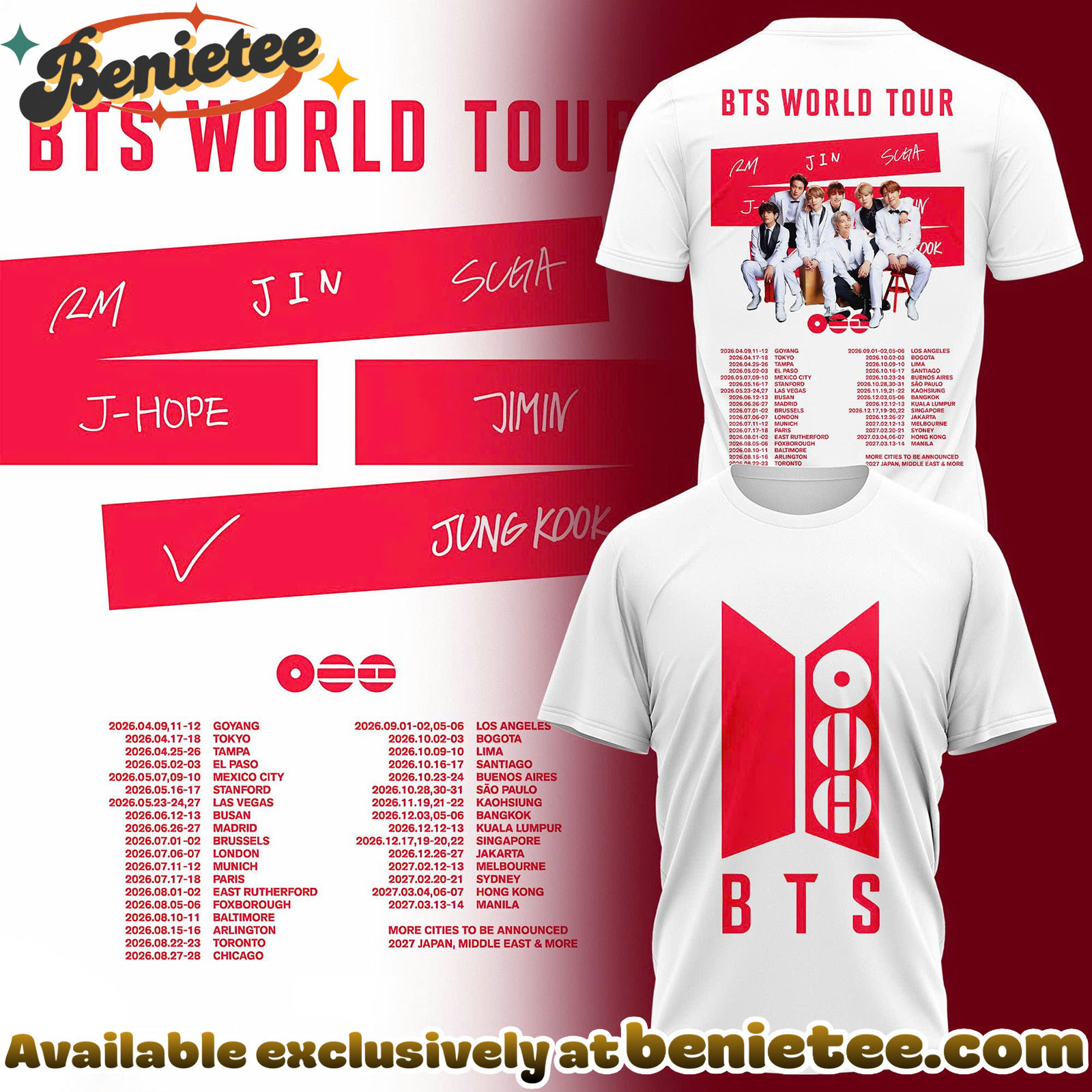 Crafted from premium, comfortable materials, this limited edition T-shirt, hoodie, and sweatshirt are perfect for everyday wear or for showcasing your fan pride at concerts and events. Whether you’re attending a show, streaming their latest release, or simply want to feel closer to the members, this apparel offers both style and durability. It makes an ideal gift for fellow ARMY members or a special treat for yourself to mark the highly anticipated 2026 comeback. Don’t miss out on owning a piece of BTS history.