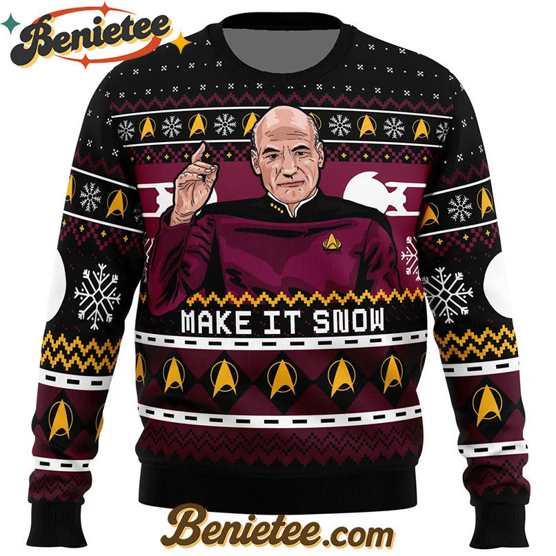 Prepare for a holiday season that’s out of this world with the Captain Picard Star Trek Ugly Christmas Sweater. This unique piece of apparel combines the warmth of a traditional ugly Christmas sweater with the timeless appeal of Star Trek. Whether you’re a lifelong fan of Captain Picard’s wisdom and leadership or simply looking for a conversation-starting holiday garment, this sweater delivers. It’s the perfect gift for the Star Trek enthusiast in your life or a fantastic treat for yourself. Celebrate the holidays in true Starfleet style and show off your fandom with pride. Secure your Captain Picard Star Trek Ugly Christmas Sweater now and ensure your holidays are as legendary as the captain himself!