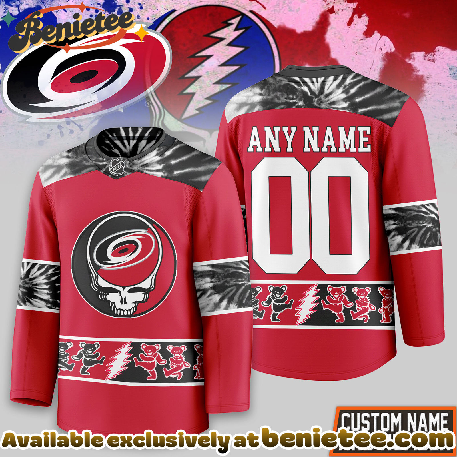 Show Your Carolina Hurricanes Pride with This Unique Tie-Dye Skull Hockey Jersey!
