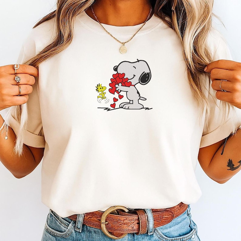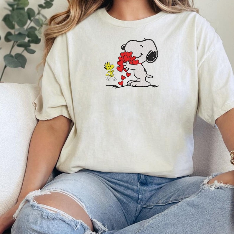 - This item: Cartoon Dog Hearts Embroidery Sweatshirt, Valentine Stitch Shirt, Snoopy Valentine Couple Shirt