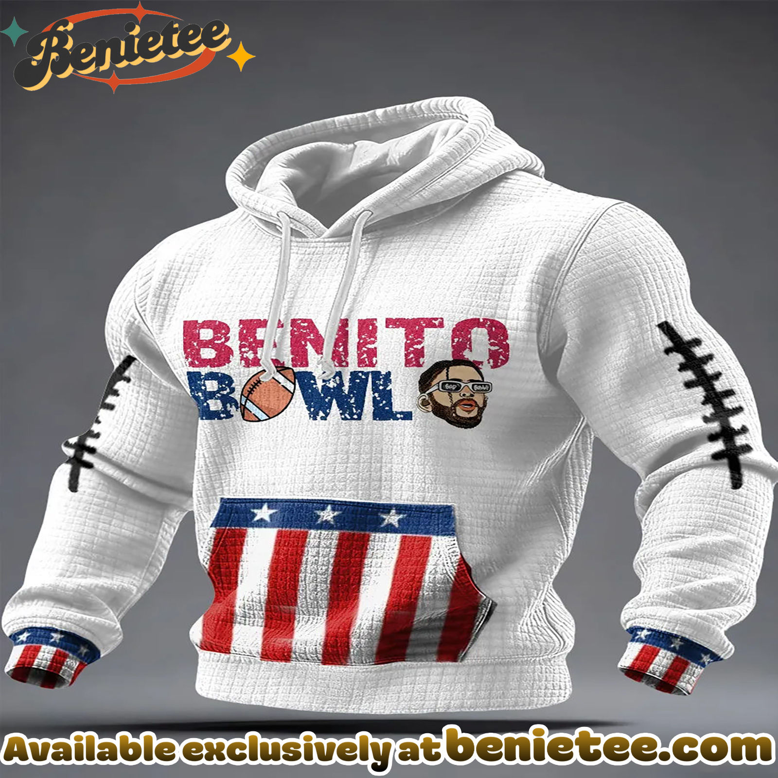Why Choose Casual Bad Bunny Super Bowl Collaboration Hooded Sweatshirt – Ver 2 – 3D Apparel?