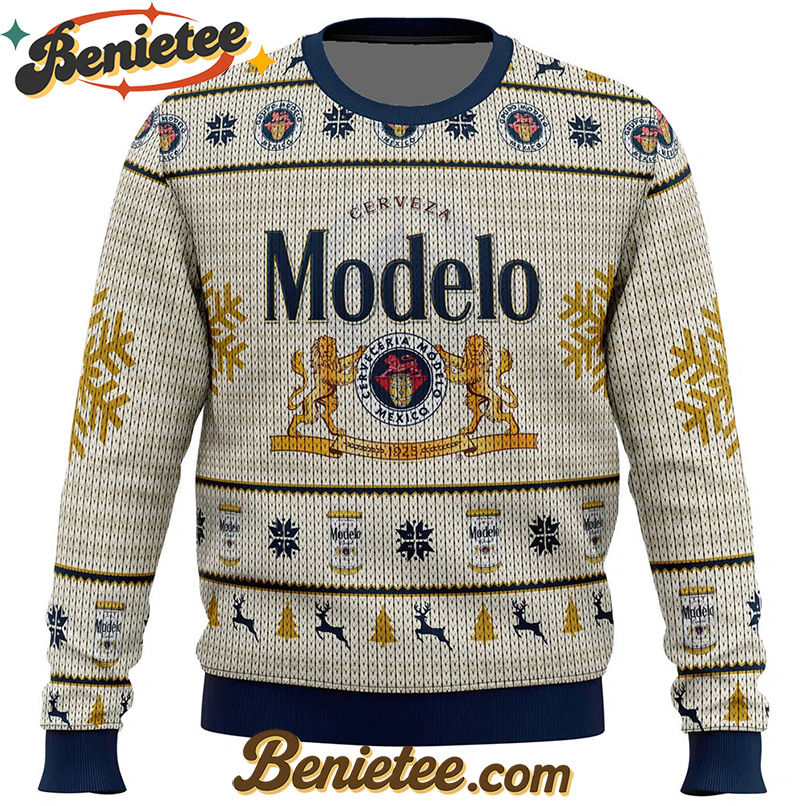 Get ready to jingle all the way and celebrate the holiday season in true style with our Cerveza Modelo Ugly Christmas Sweater. This festive pullover is designed for those who love to mix their holiday cheer with their favorite cerveza. Featuring a unique and eye-catching design that perfectly captures the essence of an ugly Christmas sweater, it’s the ideal choice for holiday parties, casual gatherings, or simply lounging at home. Made with comfort and durability in mind, this sweater is perfect for staying warm during chilly winter nights while showcasing your appreciation for Modelo. Don’t miss out on adding this must-have piece to your festive wardrobe and make this Christmas unforgettable. Buy yours today and spread the holiday cheer!