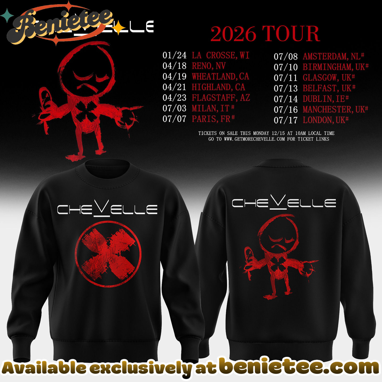 Chevelle 2026 Tour Merchandise: Sweatshirt, Hoodie, and T-Shirt – Shop Now!