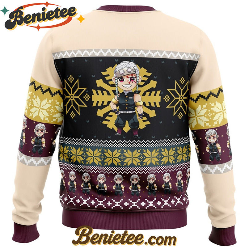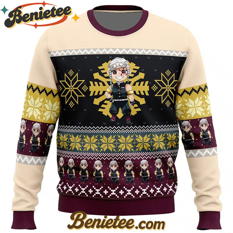 Celebrate the season with the Chibi Christmas Tengen Uzui Demon Slayer Ugly Christmas Sweater — a playful, cozy ugly sweater made for joyful holiday moments.