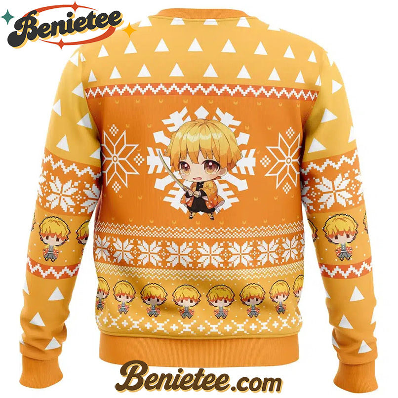 Embrace the Holiday Spirit with a Chibi Christmas Zenitsu Agatsuma Demon Slayer Ugly Christmas Sweater!