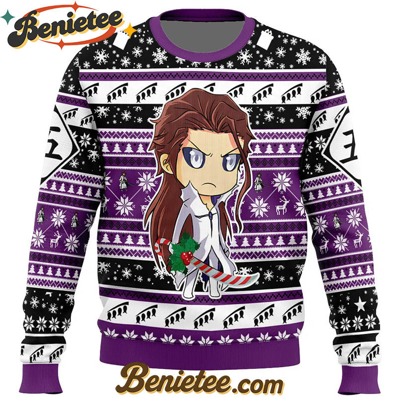 This holiday season, step away from the mundane and into the extraordinary with a Chibi Sousuke Aizen Bleach Ugly Christmas Sweater. Perfect for anime fans and those who appreciate a touch of villainous charm, this sweater brings the iconic character into your festive celebrations. Imagine the surprised and delighted reactions when your friends and family spot Aizen’s signature smirk and distinctive look, reimagined in a playful, chibi style, adorning your cozy holiday attire. It’s more than just a sweater; it’s a statement piece that blends your love for Bleach with the joyous spirit of Christmas, making it an unforgettable addition to your wardrobe. Get yours today and make this Christmas truly legendary!