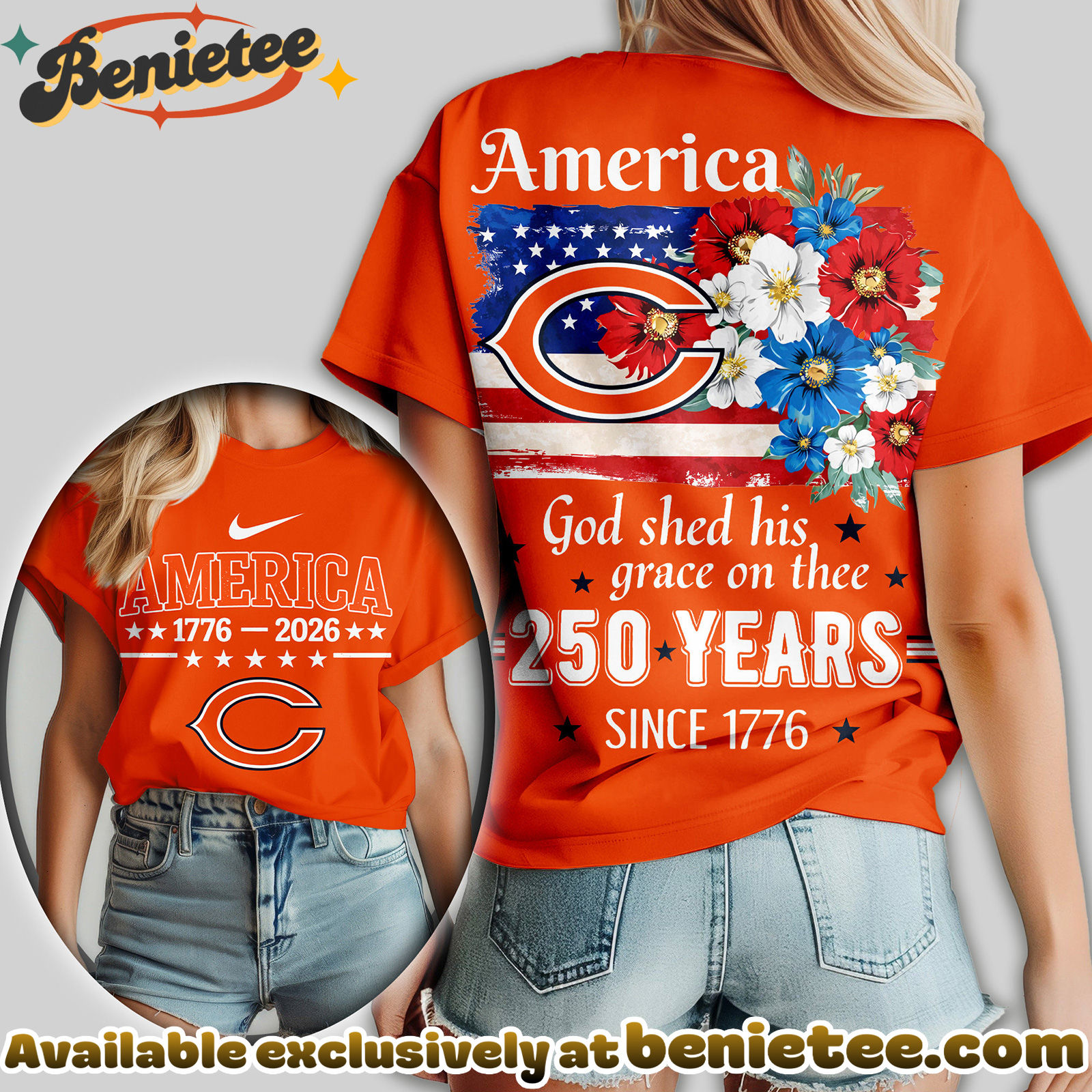 - ⚙️ Made to Order: Each Chicago Bears Premium NFL America God Shed His Grace On Thee Women Tshirt, Hoodie, Sweatshirt is created individually after purchase to ensure a fresh, premium finish.