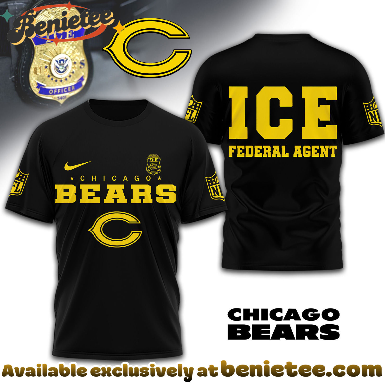 - ⚙️ Made to Order: Each Chicago Bears Premium NFL Ice Federal Agent Shirt is created individually after purchase to ensure a fresh, premium finish.