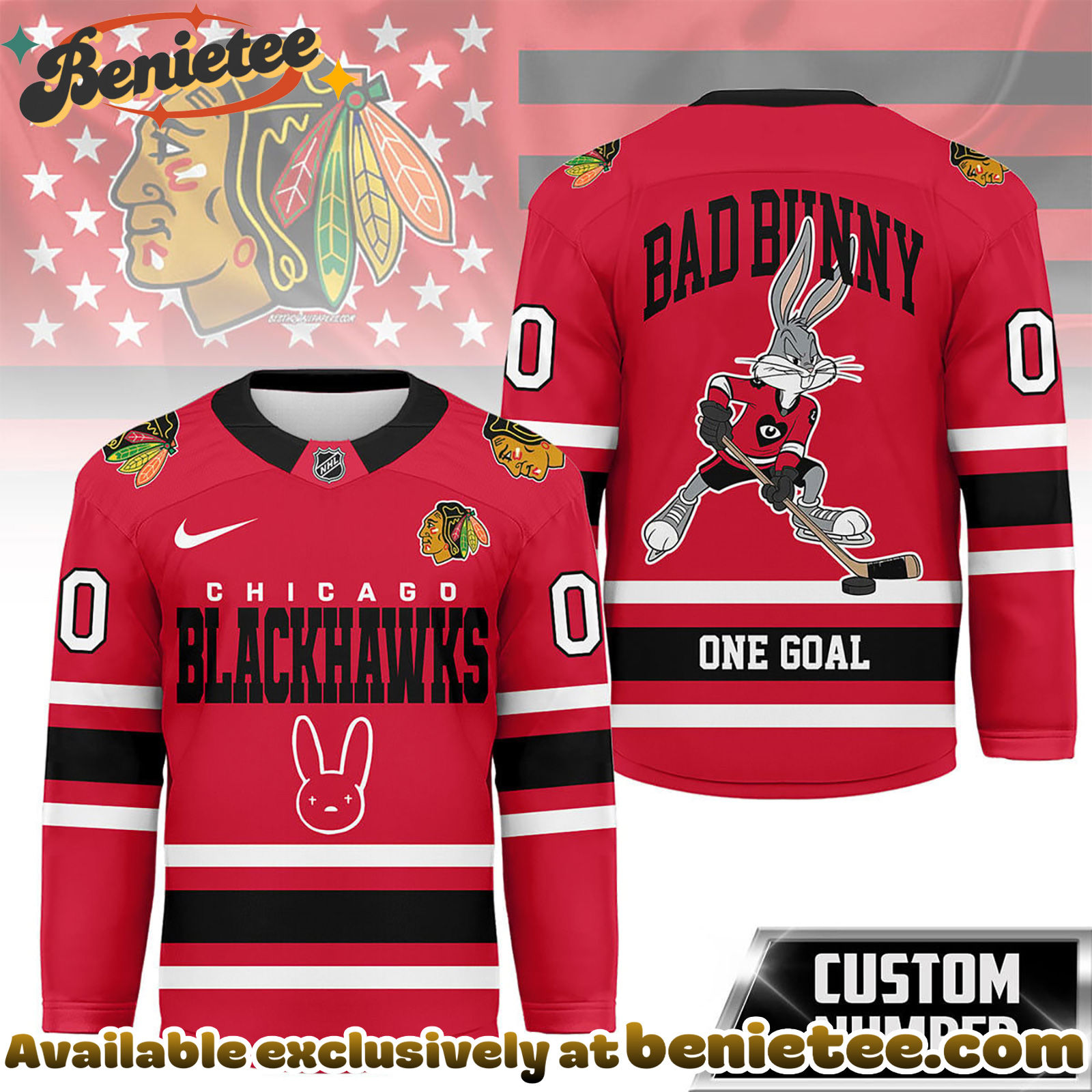 ⚡ Customize your Chicago Blackhawks Premium NHL Bad Bunny Hockey Jersey NY now and wear your hockey passion with confidence and style! 🏒🔥