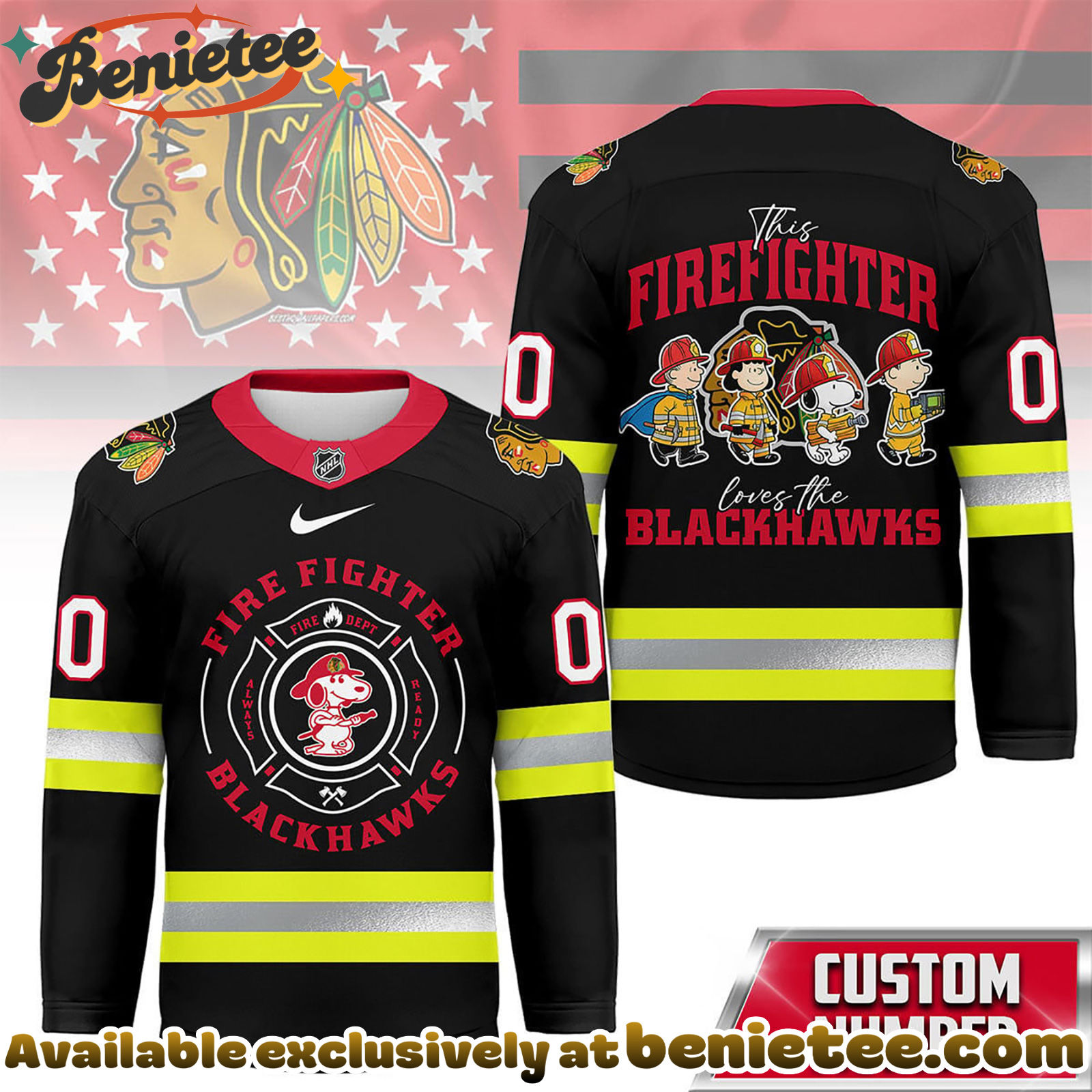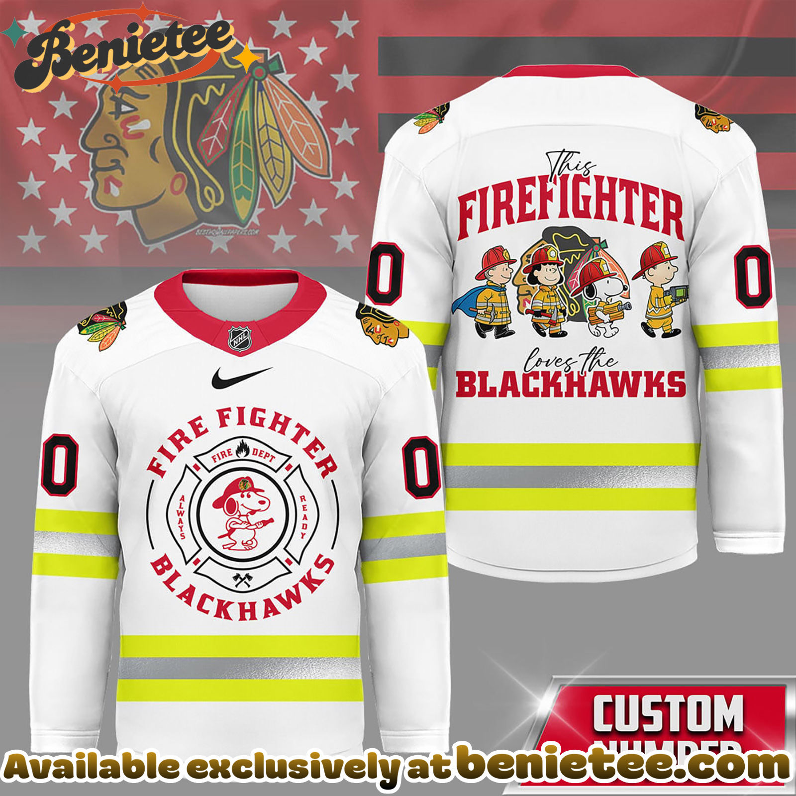 Chicago Blackhawks Premium NHL Snoopy Firefighter Hockey Jersey