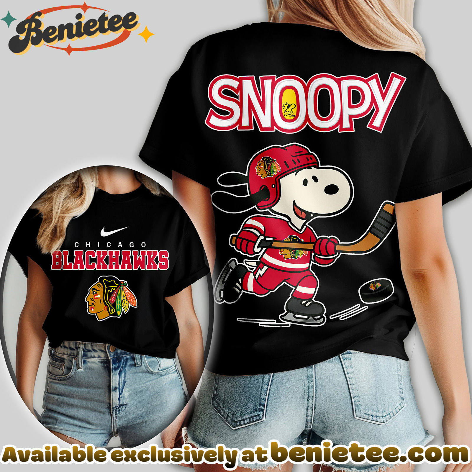 ⚡ Elevate your wardrobe with Chicago Blackhawks Premium NHL Snoopy Hockey Women Tshirt, Sweatshirt, Hoodie and enjoy high-impact 3D style with everyday comfort. ✨