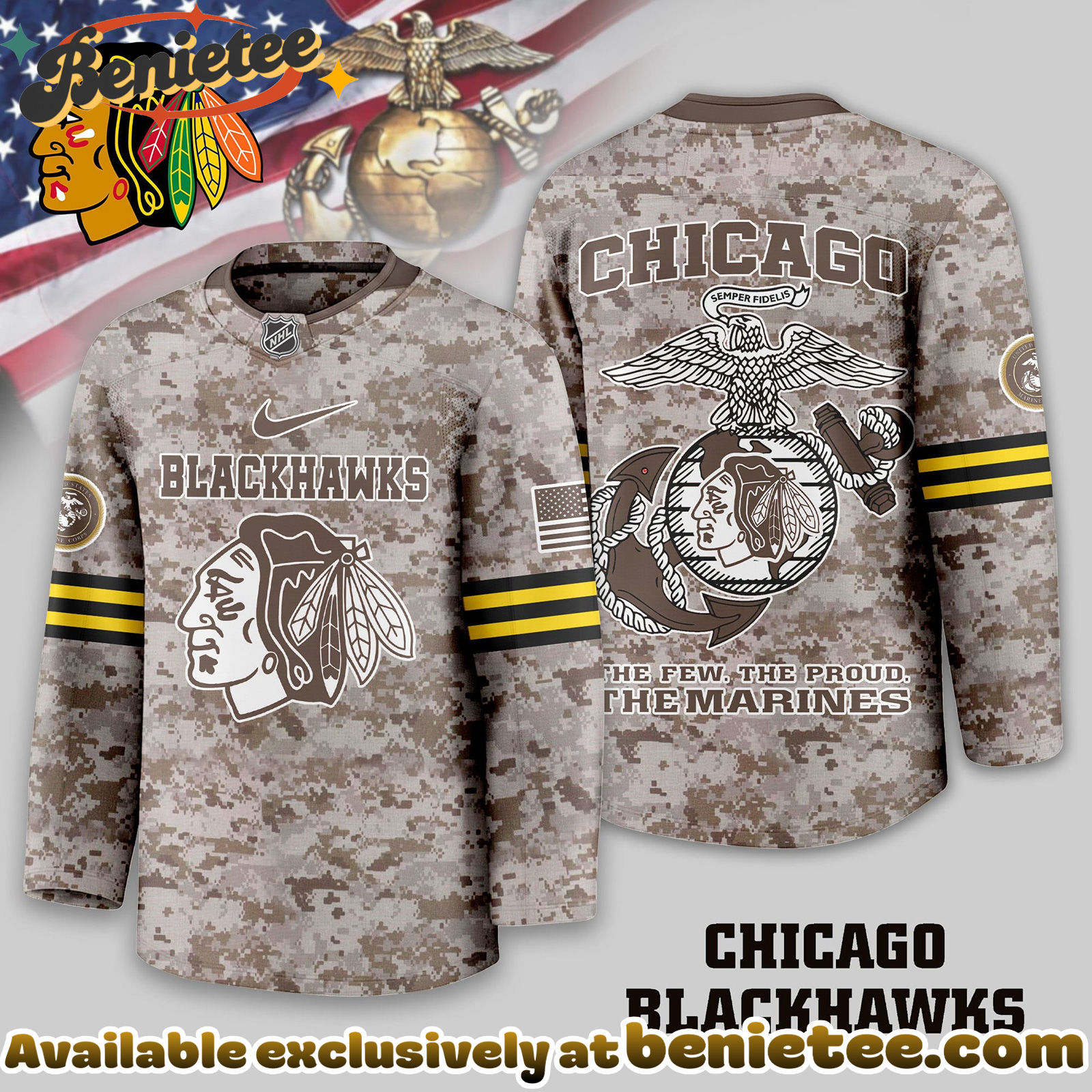 Show your pride with the exclusive Chicago Blackhawks Premium NHL U.S.M.C Hockey Jersey
