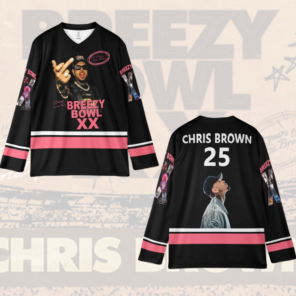 - This item: Chris Brown Breezy Bowl XX Tour 2025 Hockey Jersey, Breezy Bowl Jersey, Chris Brown Hockey