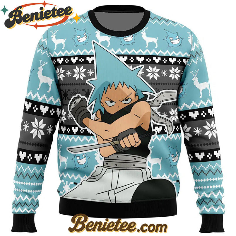 Are you searching for the ultimate gift for a Soul Eater enthusiast or looking to add some unconventional flair to your own holiday attire? Our Christmas Black Star Soul Eater Ugly Christmas Sweater is the answer. This eye-catching sweater is designed to spark conversations and bring a smile to fellow fans’ faces. Its high-quality print ensures the vibrant design lasts through many festive seasons to come. Celebrate your love for Soul Eater and the holidays in unparalleled style. Click to purchase this unique piece and make this Christmas truly unforgettable!