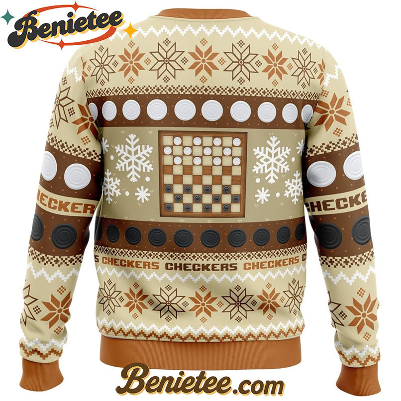 Unwrap the Fun: Shop the Christmas Checkers Board Game Ugly Christmas Sweater Now!