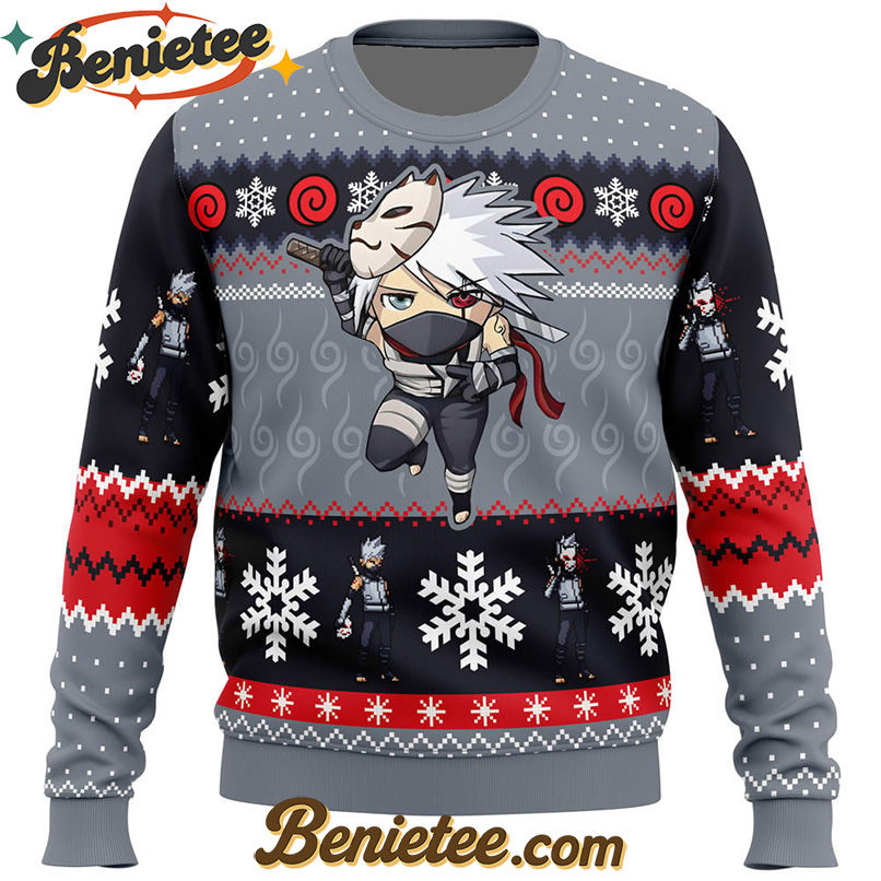 Embrace the Festive Spirit with a Christmas Chibi Anbu Kakashi Hatake Shippuden Sweater!