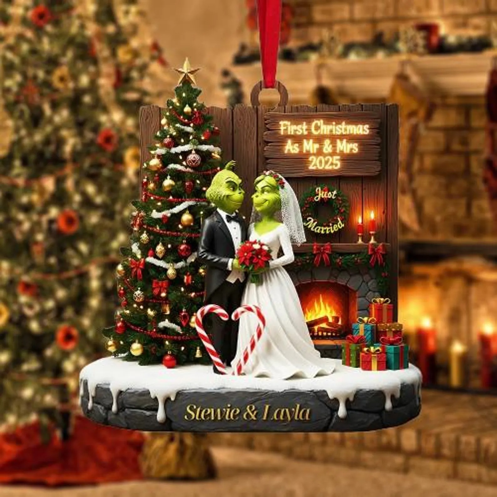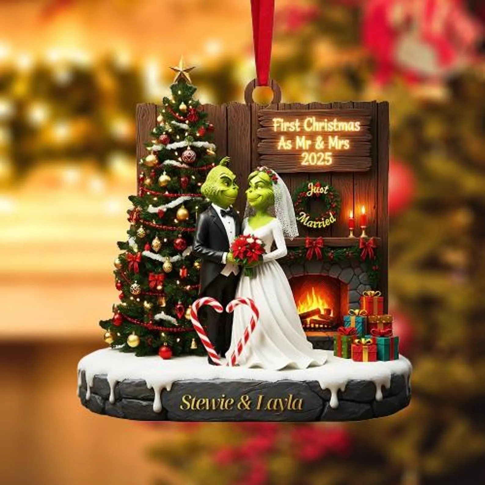 Christmas Grinch Ornaments, Personalized Grinch Christmas Ornament, Funny Grinch Monster Couple, Christmas Ornament, Merry Grinmas Gift