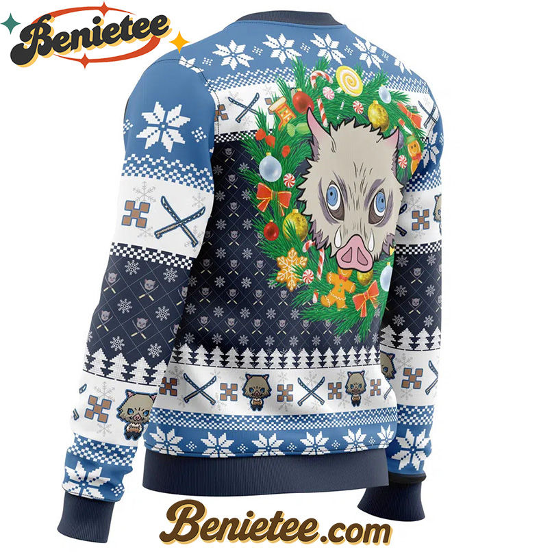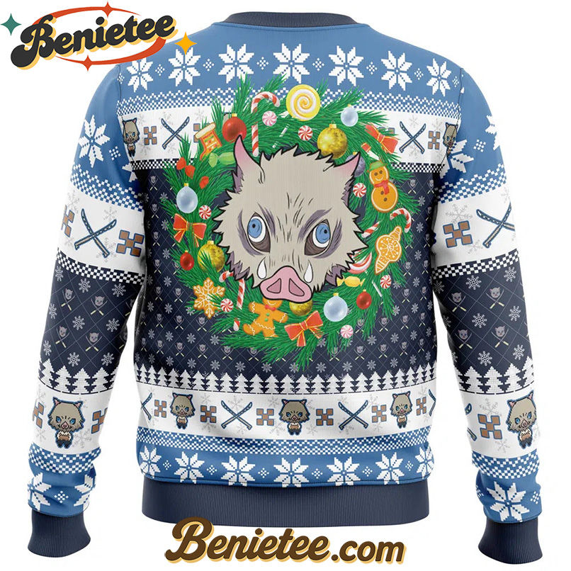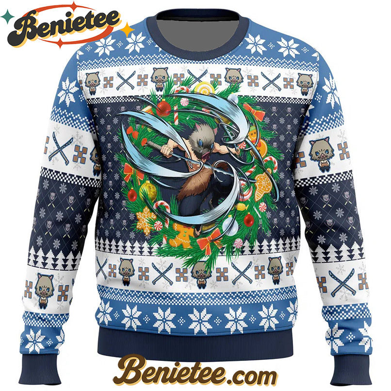 Embrace the Holiday Spirit with a Demon Slayer Christmas Hashibira Inosuke Ugly Christmas Sweater!