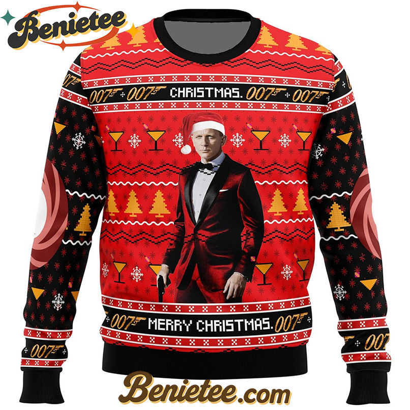 Celebrate the season with the Christmas, Merry Christmas 007 James Bond Ugly Christmas Sweater — a playful, cozy ugly sweater made for joyful holiday moments.