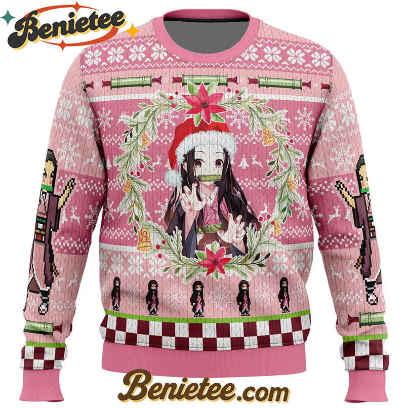 Embrace the Festive Spirit with Our Christmas Nezuko Kamado Demon Slayer Ugly Christmas Sweater!