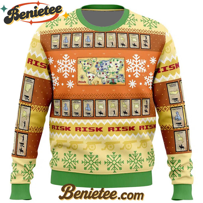 Embrace the Holiday Chaos with a Christmas Risk Board Games Ugly Christmas Sweater – Get Yours Today!