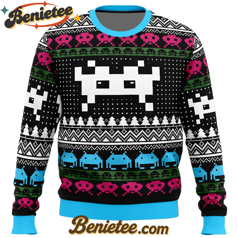 Celebrate the season with the Christmas Space Invaders Ugly Christmas Sweater — a playful, cozy ugly sweater made for joyful holiday moments.