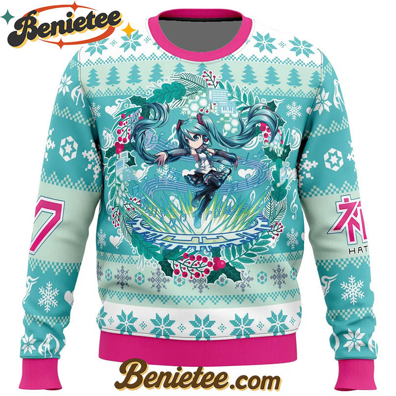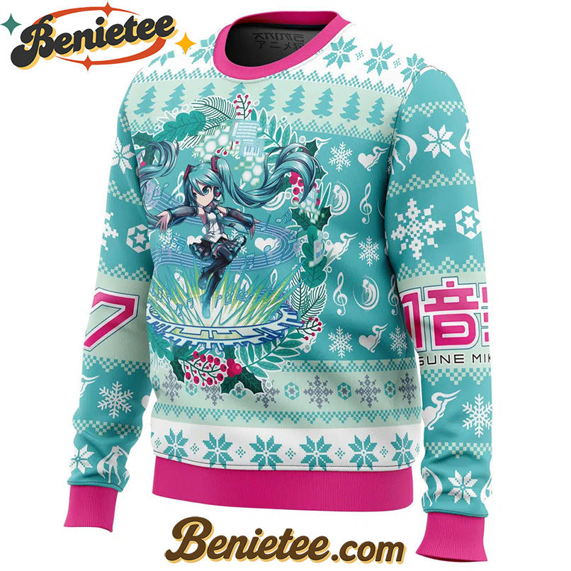 Unleash Your Inner Idol with a Hatsune Miku Ugly Christmas Sweater – Shop Now!