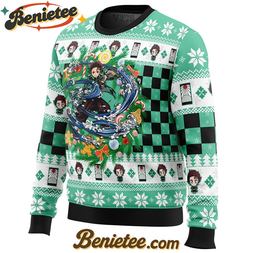 Embrace the Festive Spirit with a Demon Slayer Christmas Tanjiro Kamado Ugly Christmas Sweater!