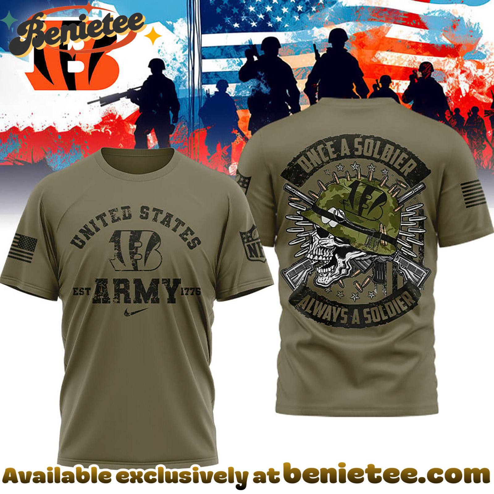 - ⚙️ Made to Order: Each Cincinnati Bengals Premium NFL Once A Soldier Always A Soldier 3D Shirt, Hoodie, Sweatshirt is created individually after purchase to ensure a fresh, premium finish.