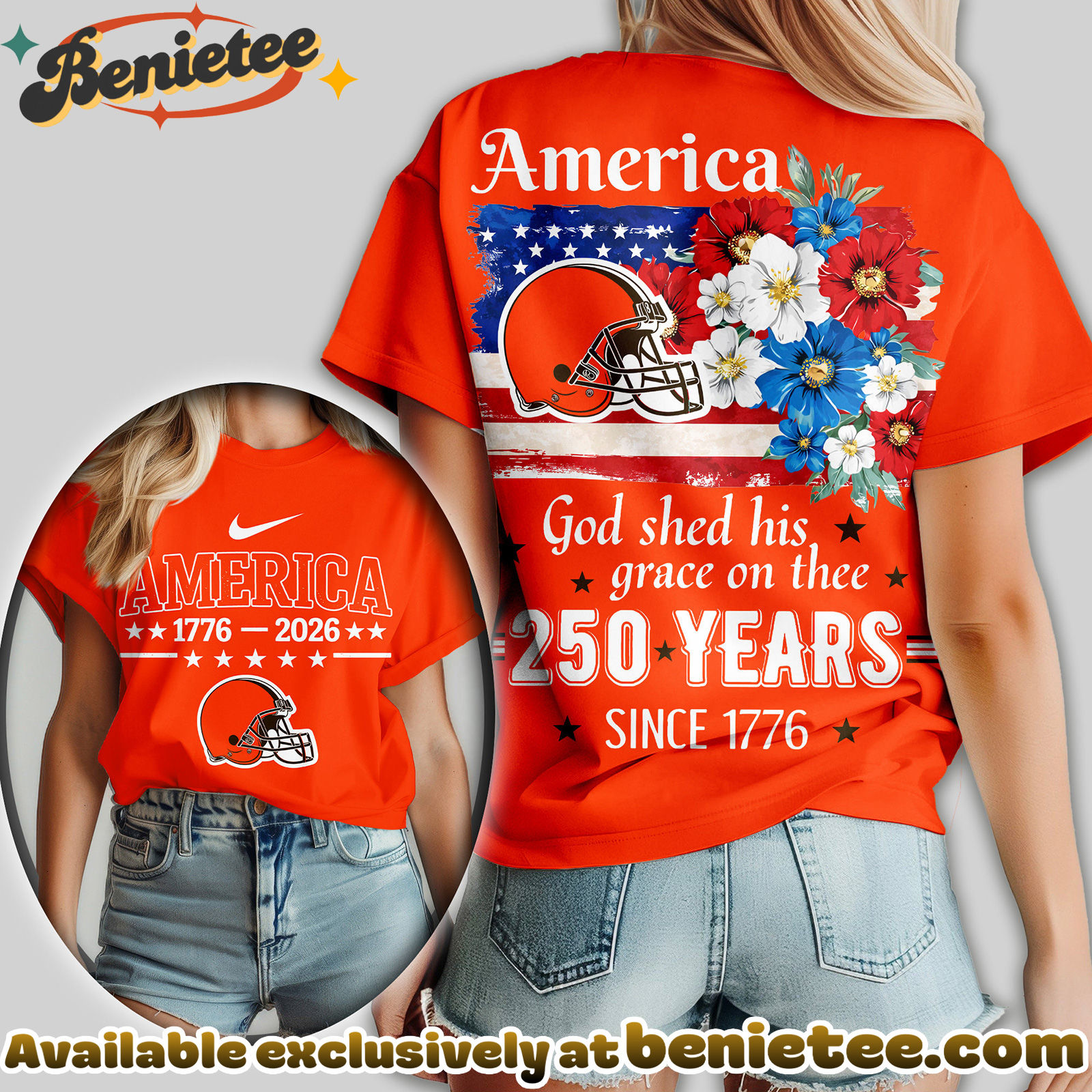 - ⚙️ Made to Order: Each Cleveland Browns Premium NFL America God Shed His Grace On Thee Women Tshirt, Hoodie, Sweatshirt is created individually after purchase to ensure a fresh, premium finish.
