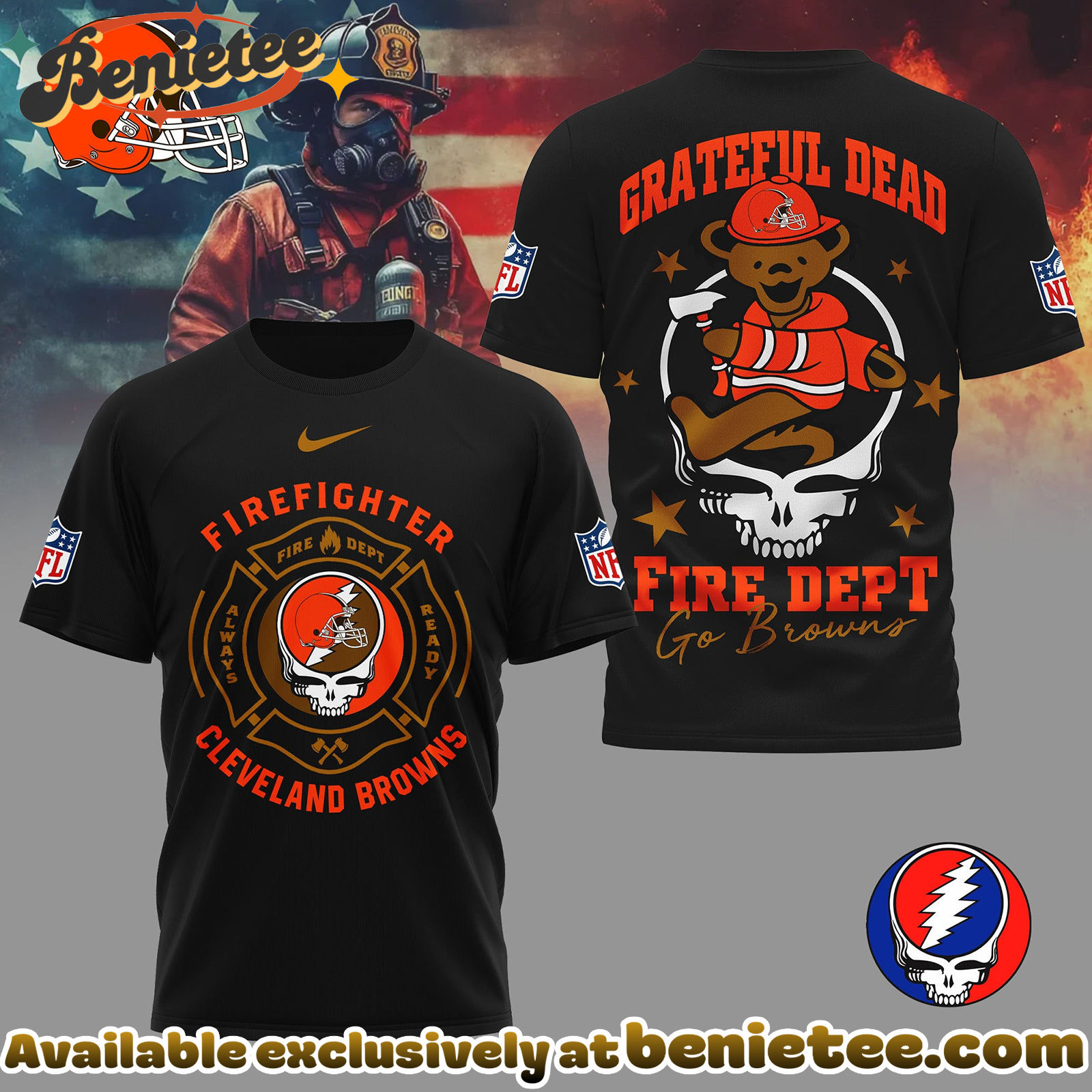 - This item: Cleveland Browns Premium NFL Grateful Dead Firefighter 3D Shirt, Hoodie, Sweatshirt