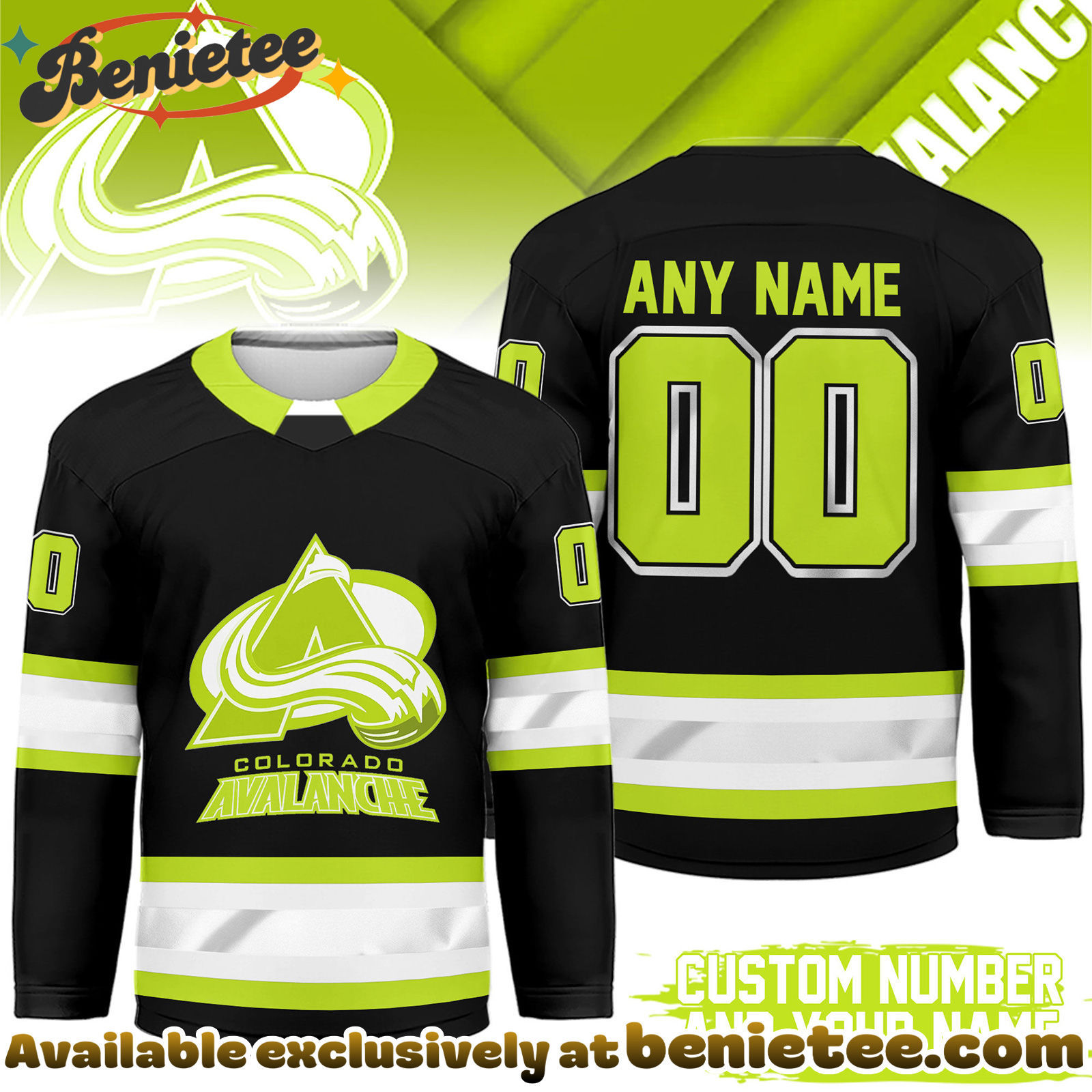 ⚡ Customize your Colorado Avalanche Premium NHL Hi-Vis Hockey Spirit Custom Name and Number Jersey now and wear your hockey passion with confidence and style! 🏒🔥