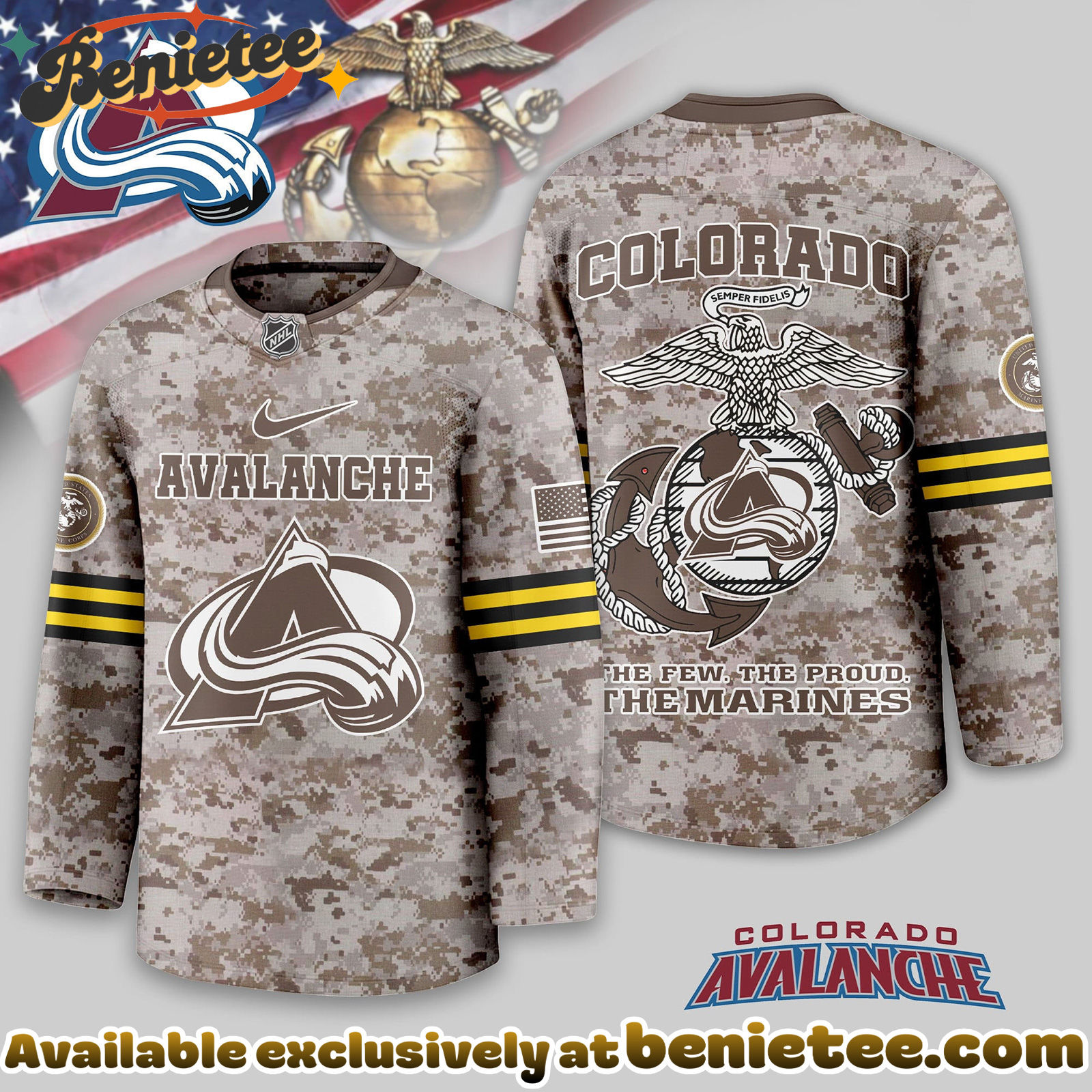 Get your Colorado Avalanche Premium NHL U.S.M.C Hockey Jersey today!
