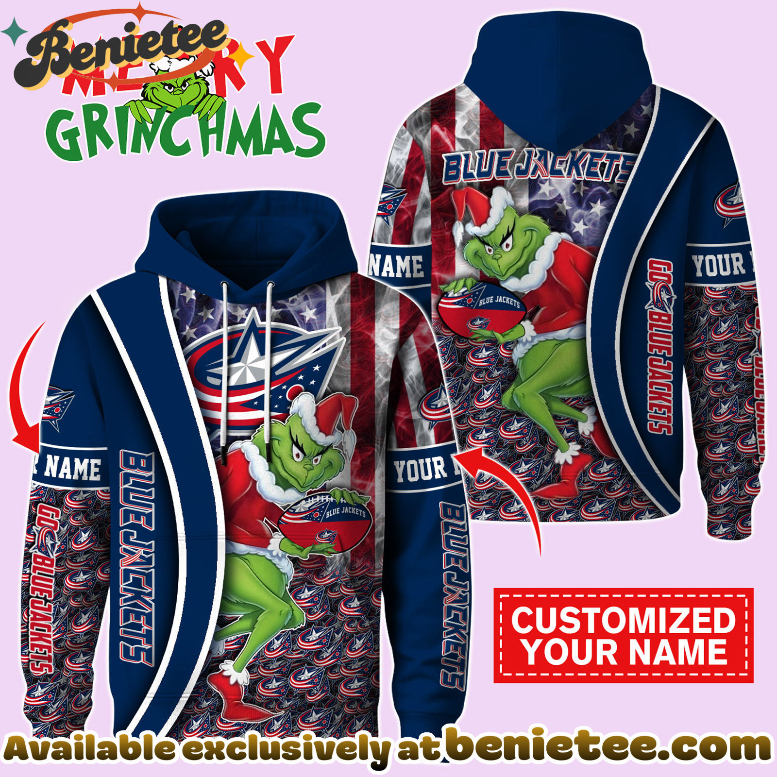 Columbus Blue Jackets x The Grinch Christmas Hockey Hoodie Limited Edition-3D Unisex Hoodie